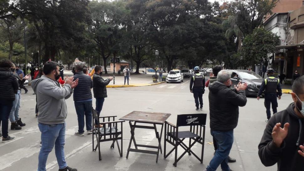 En contra de las nuevas restricciones, propietarios y empleados de bares y restaurantes improvisaron una protesta en la plaza Urquiza, como así también sucedió en la localidad de Lules.