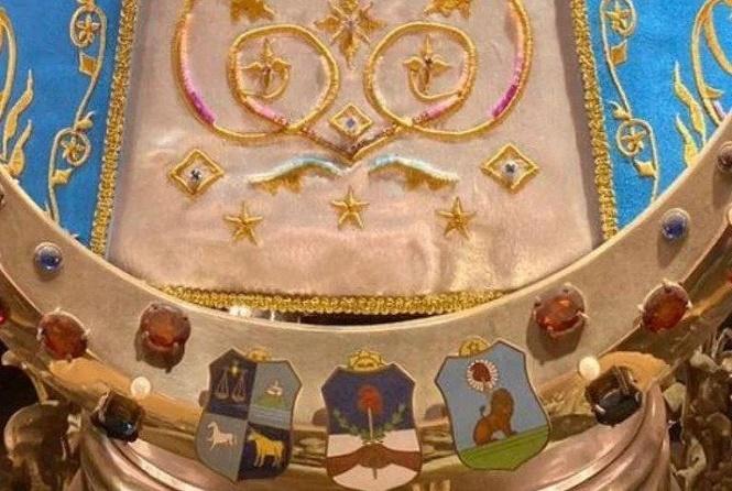 En el cambio de traje de este año de la imagen de María se incluyó la referencia a los 3 campeonatos ganados por la Selección Argentina