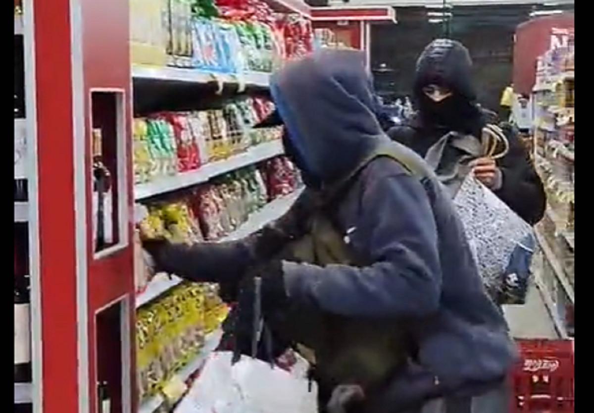 En los videos se ve con claridad cómo los delincuentes, tras romper las puertas de ingreso, lograron entrar al lugar y se llevaron bebidas alcohólicas y mercadería.