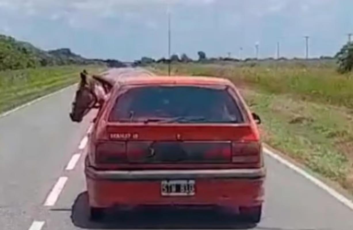En las últimas horas se viralizó un material llamativo en redes sociales: se trata de un conductor que llevó a su caballo dentro de su auto Renault 19 mientras circulaba por las rutas de Córdoba, en lo que representó una peligrosa acción al volante, a pesar de que las personas que grabaron el contenido se reían por tratarse de una situación desconcertante.