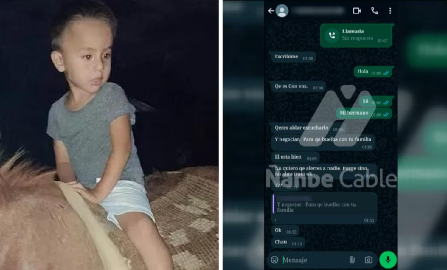 Uno de los hermanos de Loan Danilo Peña mostró un chat extorsivo que recibió desde Chaco por parte de una persona que sostuvo que estaba con el menor y que no puede hablar porque si no "no había trato".
