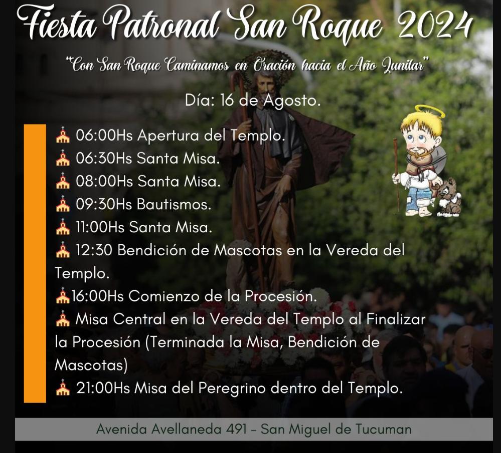 En diferentes puntos del país se llevará a cabo la Santa Misa con bendición de los pancitos para las mascotas. La imagen de San Roque se representa siempre junto a su fiel perro. En algunos países de Latinoamérica se lo conoce también como el Patrono de los Perros