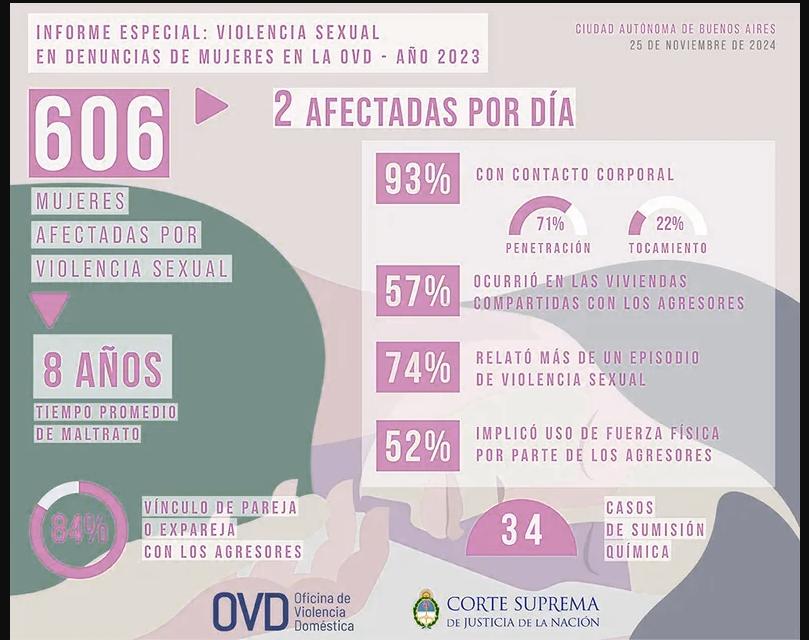 En el marco del Día Internacional de la Eliminación de la Violencia contra la Mujer, la Oficina de Violencia Doméstica (OVD) de la Corte Suprema de Justicia de la Nación presentó un informe especial sobre denuncias de violencia sexual contra mujeres en el ámbito familiar.