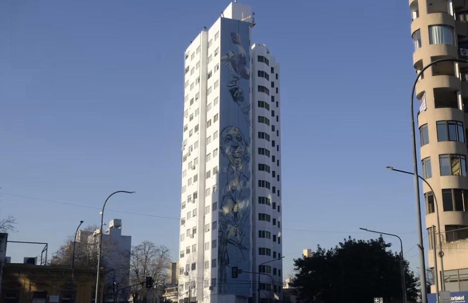 El mural, que emplea una técnica hiperrealista, progresa capa por capa sobre la pared de un edificio situado en la esquina de 14 y 54.