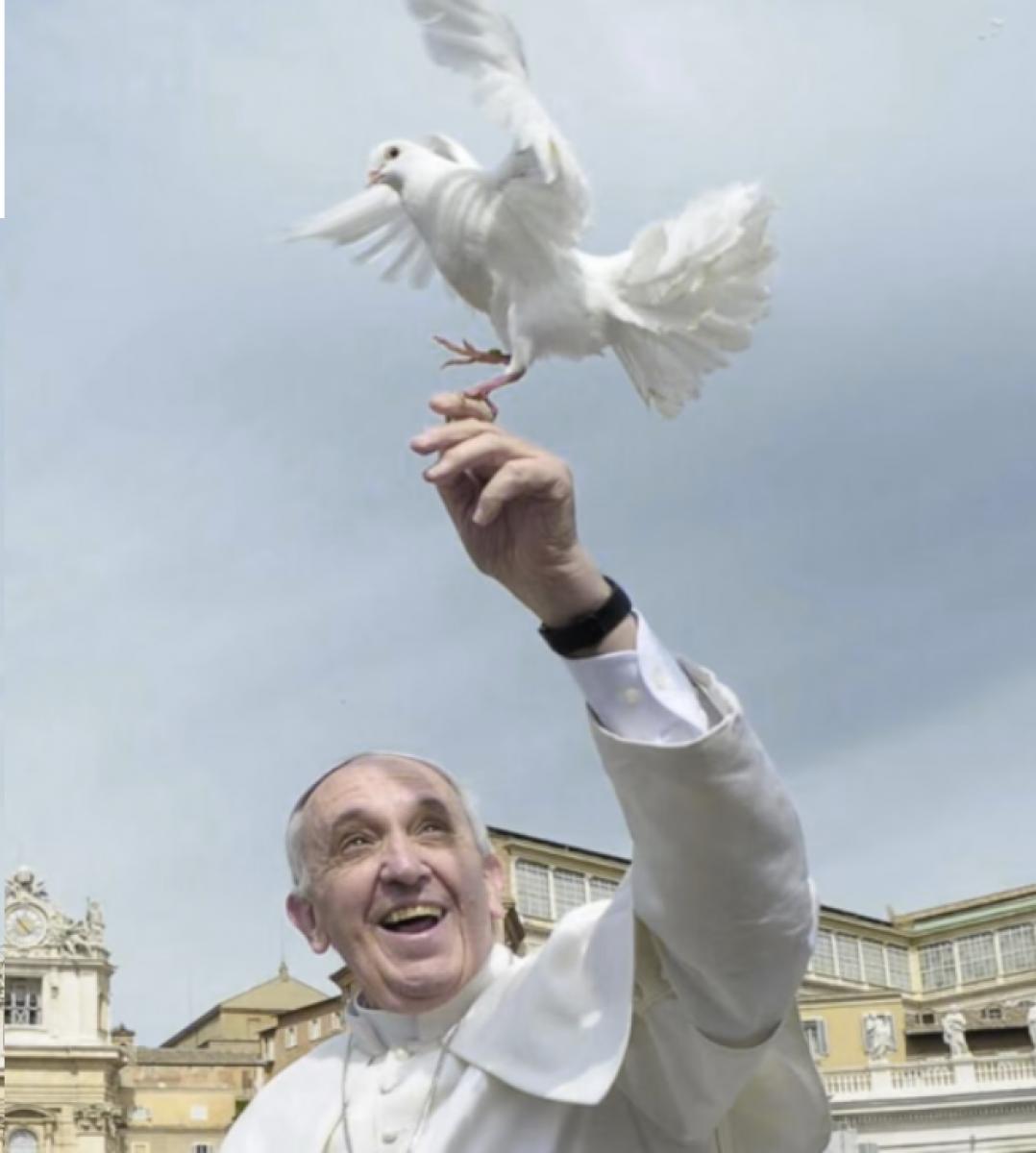 En las imágenes se puede apreciar que el mural busca imitar una de las fotos más emblemáticas de Jorge Bergoglio: él sonriendo con una paloma blanca -símbolo de la paz- posada en una de sus manos.