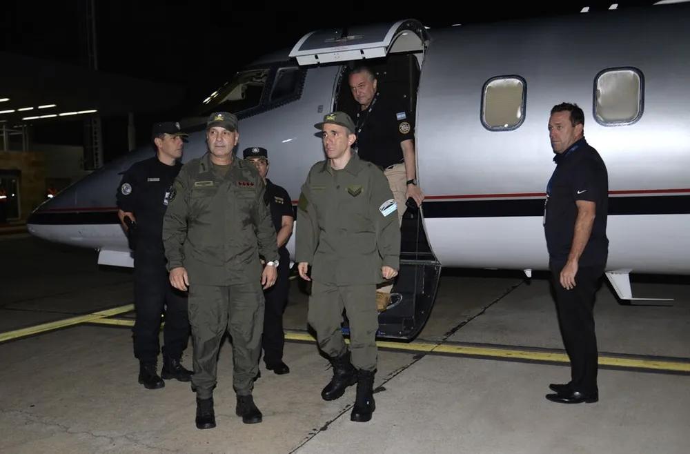 De acuerdo con la información a la que pudieron acceder los medios nacionales, la Gendarmería formó un cordón y la banda de la fuerza lo recibió. Él, por su parte, descendió del avión con el uniforme puesto.
