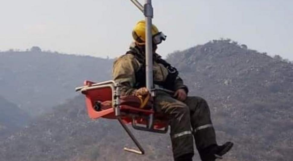 En la aerosilla trasladaron a bomberos a la cima de la montaña para combatir desde allí las llamas.Fuente:(Agencias)