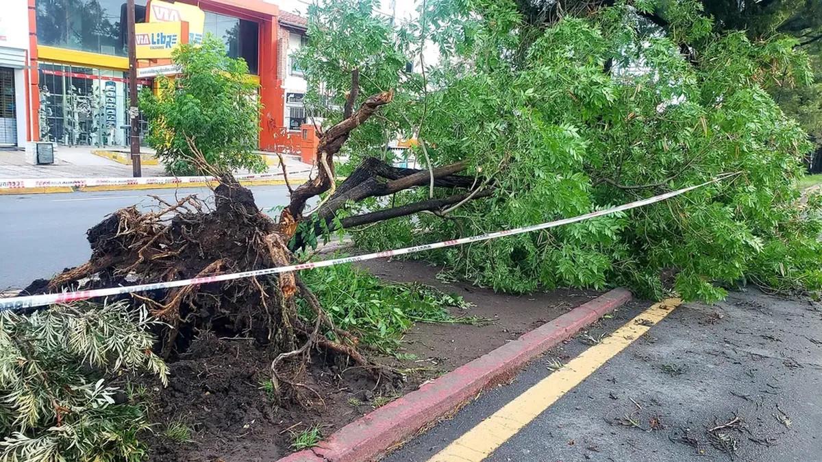 Díaz también indicó que registraron caída de postes –algunos de Epec que provocaron cortes de energía- y de decenas de árboles debido al fuerte viento.