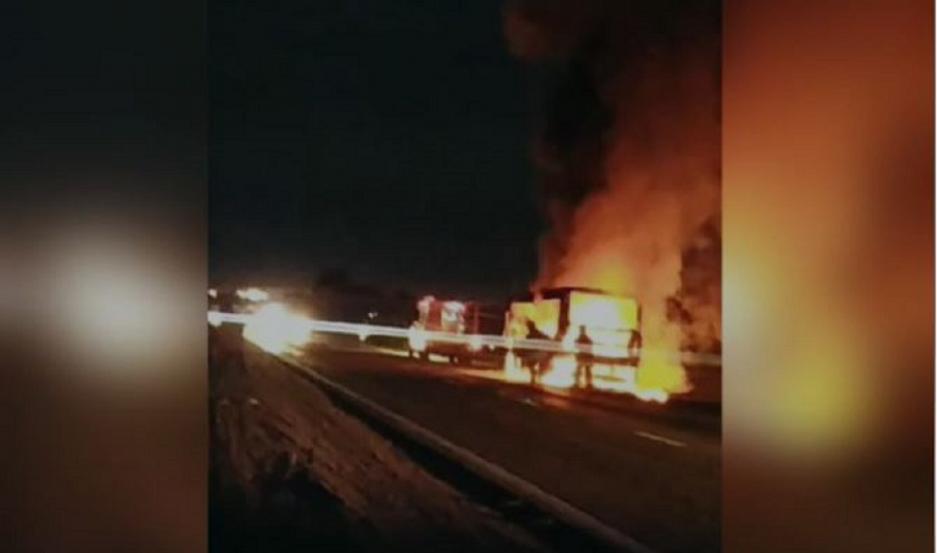 Esta mañana, un colectivo que viajaba desde Fernández hacia Santiago se incendió por completo a la atura del kilómetro 696 en la ruta 34