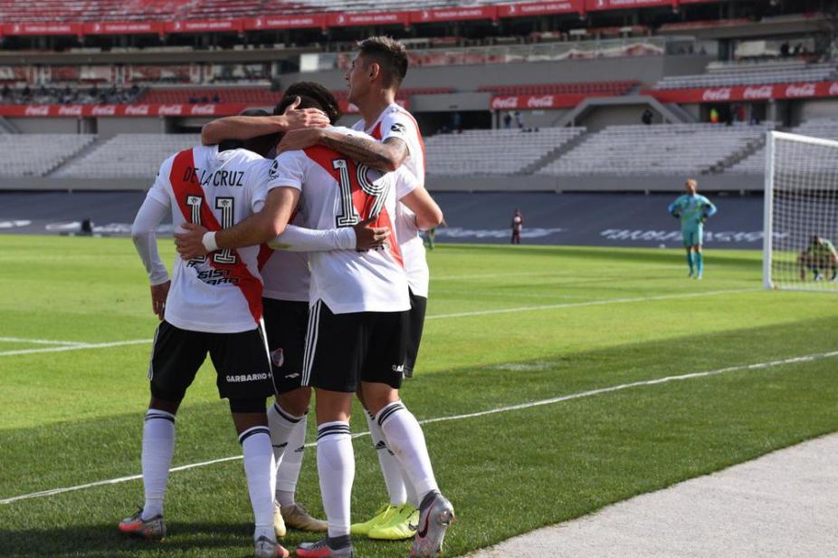Gonzalo Montiel, de penal, Rafael Santos Borré, José Paradela y Matías Suárez, en el día de su vuelta, que justo coincidió con su cumpleaños número 33, convirtieron los goles de la victoria, mientras que Malcom Braida había anotado el empate transitorio.