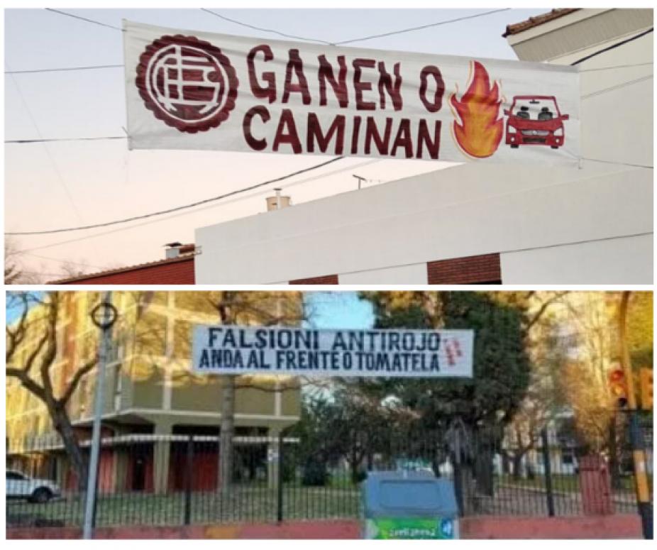 La pancarta tiene referencia directa con los hechos violentos de la semana pasada en Mar del Plata, donde barras del club Aldosivi ingresaron al predio y quemaron cinco vehículos del plantel profesional, después de la derrota con Godoy Cruz en Mendoza.