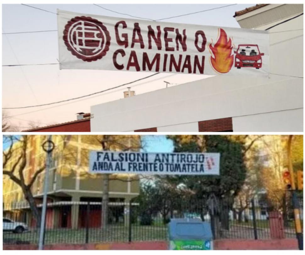 Mientras tanto, en Avellaneda el apuntado fue el DT Julio César Falcioni: "Fal$ioni antirojo, andá al frente o tomatelá". El Emperador inició su tercer ciclo en el club hace tres fechas, a menos de un año de su salida en medio de una interna con el exmánager Daniel "Rolfi" Montenegro. Hasta el momento sumó dos puntos de nueve posibles, ya que perdió con River y empató frente a Lanús y Huracán.