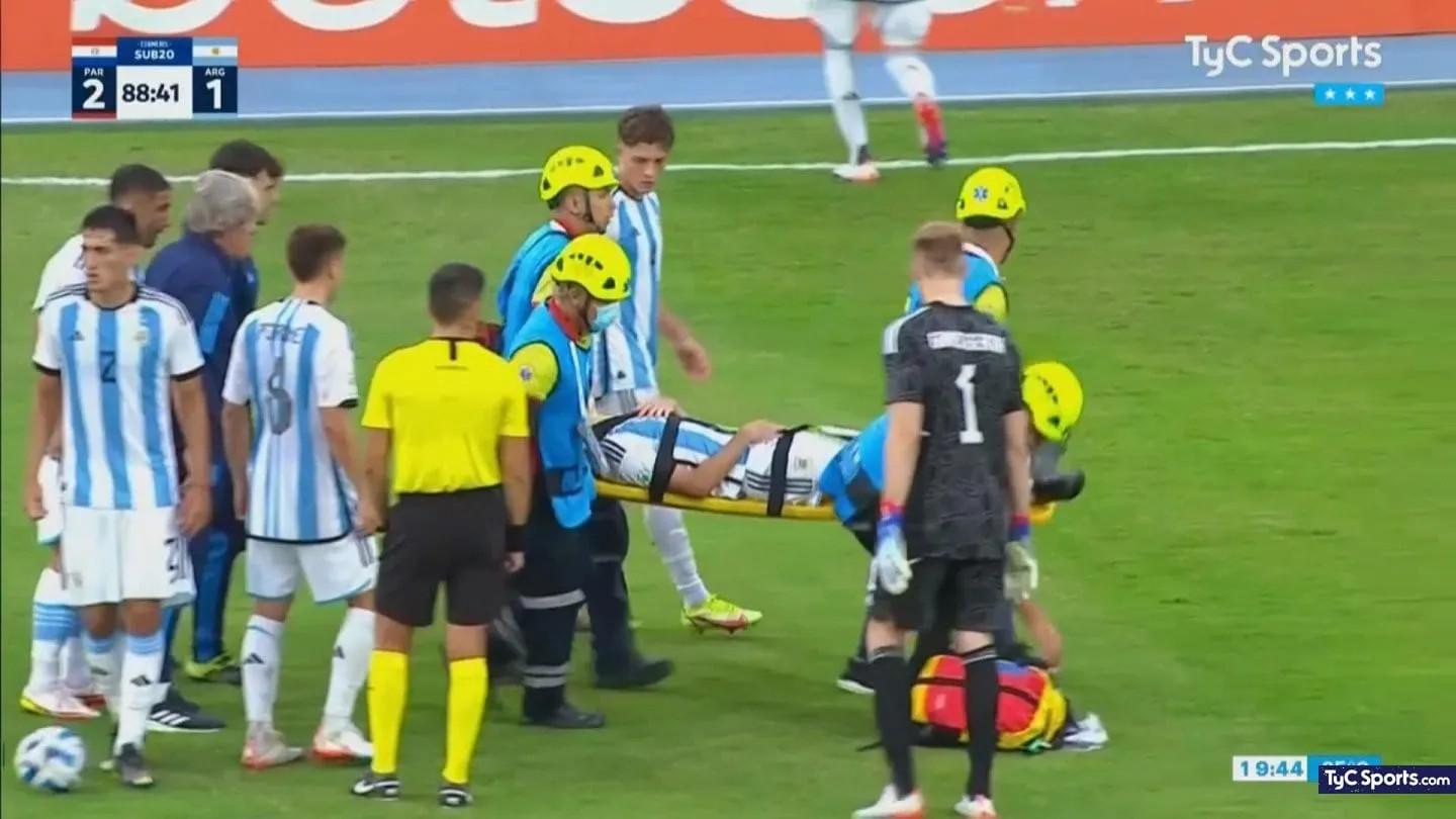 Facundo Buonanotte, futbolista de la Seleccion Argentina Sub 20, cayó muy mal y tuvo que ser retirado en camilla y con un cuello ortopédico en el partido ante Paraguay, por el Sudamericano que se disputa en Colombia.