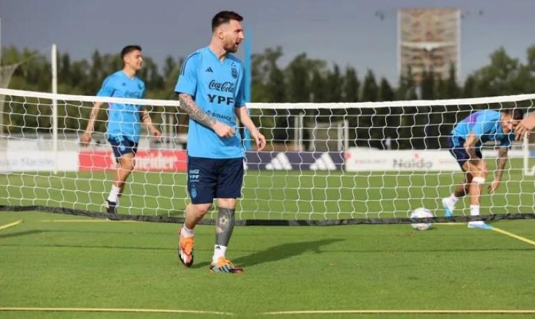 La práctica vespertina comenzó a las 17.15 con los clásicos rondos y algunos trabajos livianos con pelota para los que no estuvieron en Qatar 2022, los que no tuvieron tantos minutos en los clubes europeos y los que ahora completan la lista.