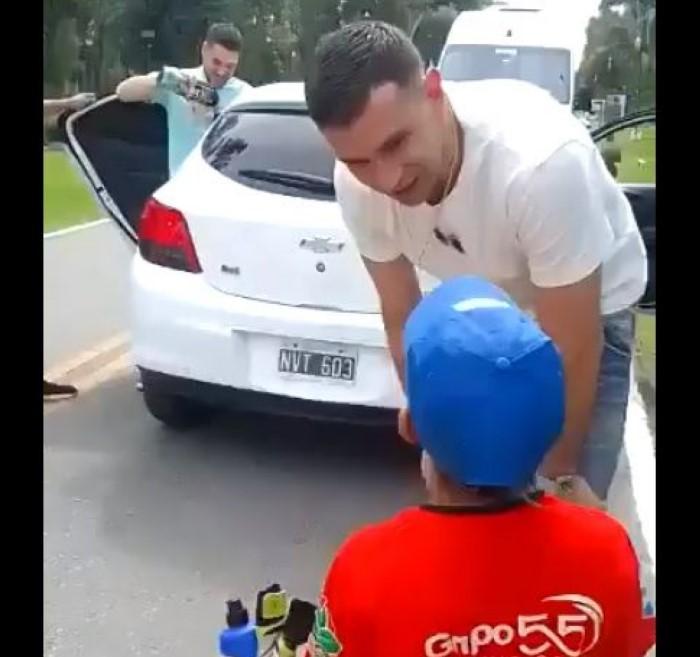 "Sos un ídolo, un capo, un genio", expresó la mamá de los nenes hacia el guardameta de la Scaloneta, mientras filma la escena con su celular y manifiesta su agradecimiento por el hermoso gesto que tuvo sin ningún reparo.