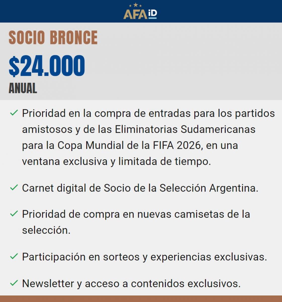 A una semana del debut ante Ecuador en las Eliminatorias, la Asociación del Fútbol Argentino lanzó el sistema de suscripción que contemplará los rangos "Bronce", "Plata" y "Oro"