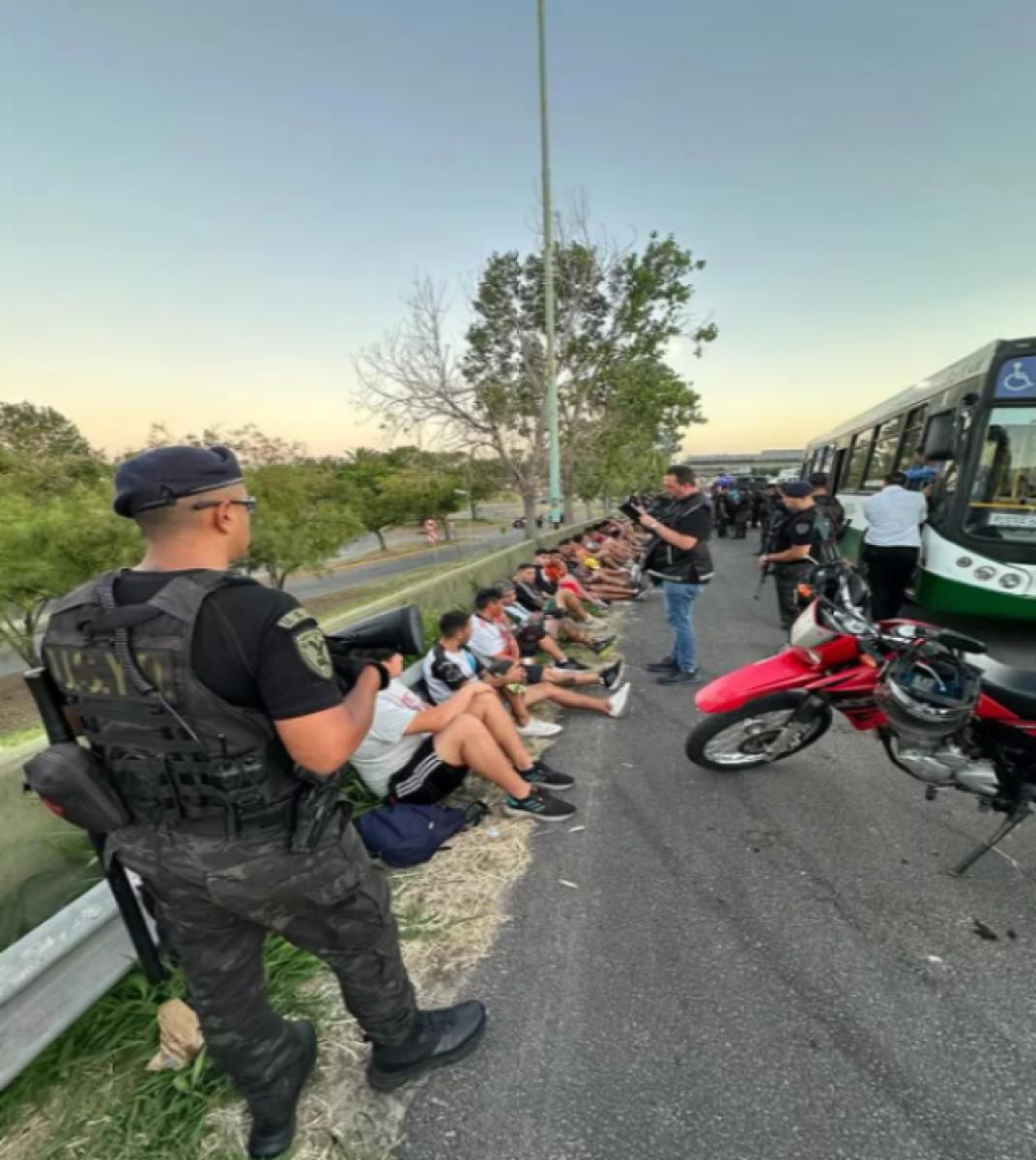 En un momento dado, llegó el dato de que los de Budge estaban en un colectivo de la línea 28 en la Lugones, esperando para emboscarlos. Ahí aparecen dos versiones: una que viene de la barra oficial y asegura que le avisaron la situación a la Policía porque no querían problemas y otra que viene de la gente que realizó el operativo que dice que jamás sucedió eso. Como fuera, lo cierto es que cuando los de la barra oficial que pueden entrar se acercaron a cruzar el Puente, los de Budge con Alejandro Medina a la cabeza, y munidos de armas blancas, palos y piedras salieron al cruce. Y se dio la pelea que dejó heridos a Medina, su hijo y otro violento más (los tres fueron atendidos en el lugar) y a los 27 barras restantes subiendo al colectivo para intentar escapar. Ahí, mientras los de la oficial sin admisión siguieron hacia la tribuna, la Policía detuvo el micro y todos los de Budge terminaron detenidos y a disposición de la fiscal de Eventos Masivos, Celsa Ramírez, que ordenó identificarlos y dejarlos adentro para ser indagados en las próximas horas.