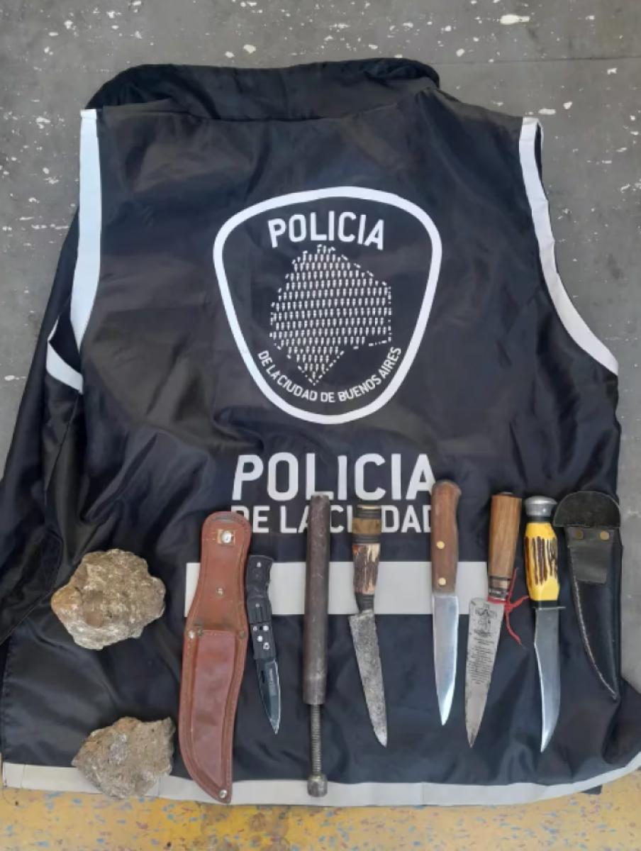El choque se dio sobre Lugones: la Policía secuestró armas blancas, palos y piedras. Uno de los detenidos es Alejandro Medina, alias Ale de Budge, un histórico de Los Borrachos del Tablón