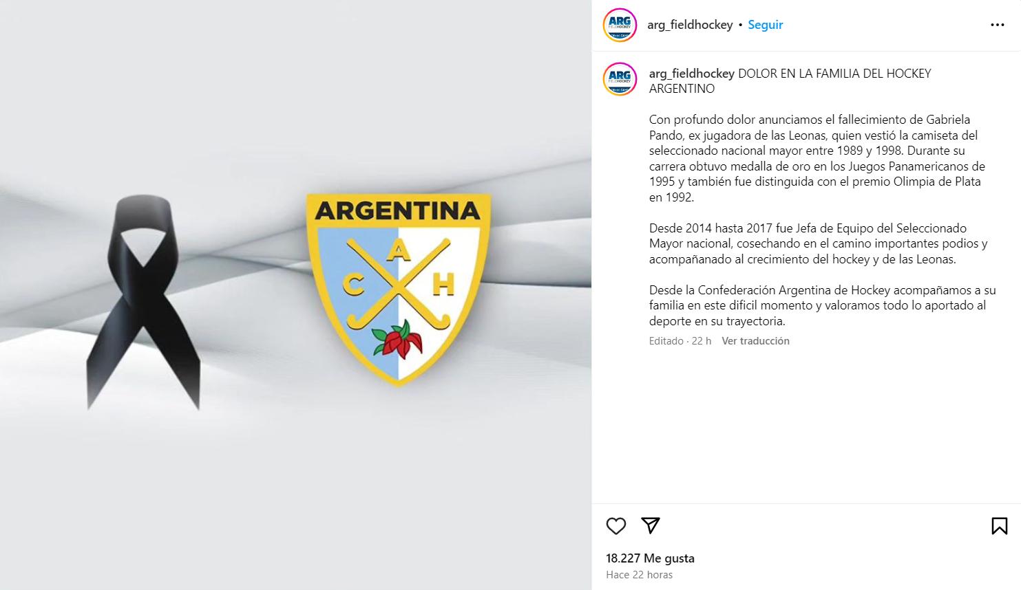 La Confederación Argentina de Hockey emitió un comunicado expresando el dolor por la partida de la histórica Leona.