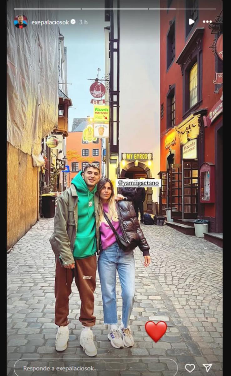 El sábado, Palacios compartió una historia que la joven había subido desde el estadio del Bayer Leverkusen durante el empate 2-2 ante el Stuttgart. Más tarde, subió una foto de ambos por la calle abrazados y sonrientes, y la acompañó de un emoji de un corazón rojo.