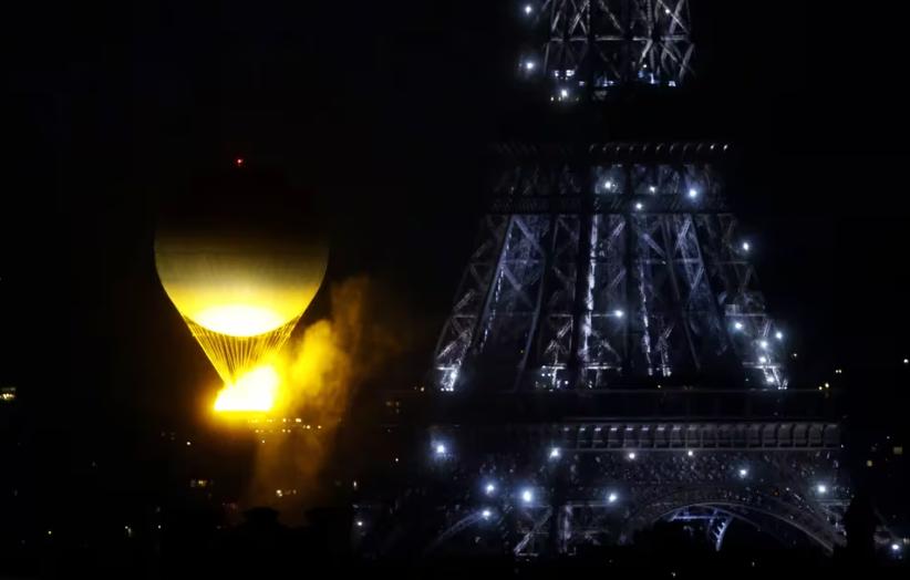 Una vez que la embarcación llegó a destino tras el recorrido por el río Sena con los atletas, la antorcha olímpica pasó a manos de la ex tenista francesa Amélie Mauresmo, quien al trote le cedió el elemento al ex basquetbolista Tony Parker, quien brilló en la NBA junto a Manu Ginóbili. A ellos se les fueron sumando más estrellas del deporte hasta que Teddy Riner y Marie-José Pérec encendieron el pebetero, que se encontraba atado a un globo gigante que sobrevoló el cielo parisino.