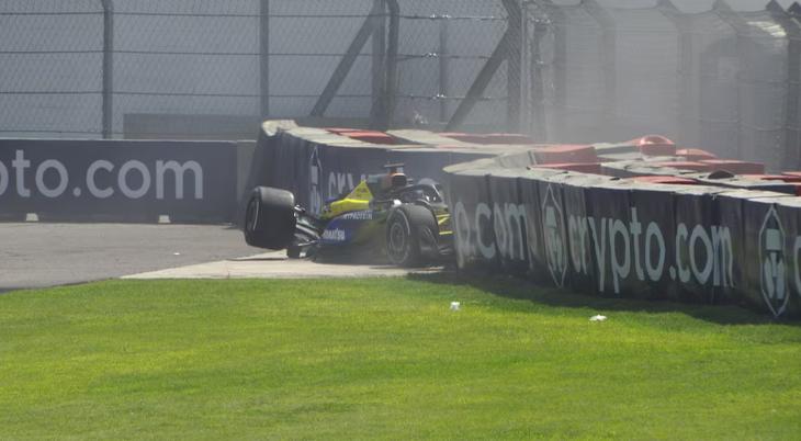 A pesar de eso, el experimentado corredor perdió la cola del auto y embistió con la parte derecha del auto a la Ferrari. Sin poder frenar, el auto que venía a gran velocidad siguió embalado y, tras un trompo, chocó de manera brutal contra las contenciones por fuera del circuito. Después del fuerte golpe, el piloto le llevó tranquilidad al equipo y dijo que estaba bien.