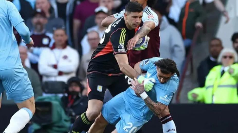 Dibu Martínez fue nuevamente uno de los principales protagonistas de la jornada de este sábado en la Premier League, pero no por sus descollantes atajadas que ya se volvieron repetitivas incluso en la Selección Argentina, sino porque se calentó con un rival y lo terminó desparramando por el piso.