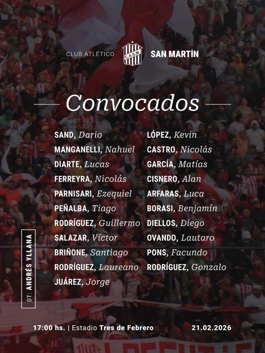 El DT Andrés Yllana seleccionó la nómina oficial del Santo para enfrentar a Almagro: Darío Sand, Nahuel Manganelli, Lucas Diarte, Nicolás Ferreyra, Ezequiel Parnisari, Tiago Peñalba, Guillermo Rodríguez, Víctor Salazar, Santiago Briñone, Laureano Rodríguez, Jorge Juárez, Kevin López, Nicolás Castro, Matías García, Alan Cisnero, Luca Arfaras, Benjamín Borasi, Diego Diellos, Lautaro Ovando, Facundo Pons y Gonzalo Rodríguez.