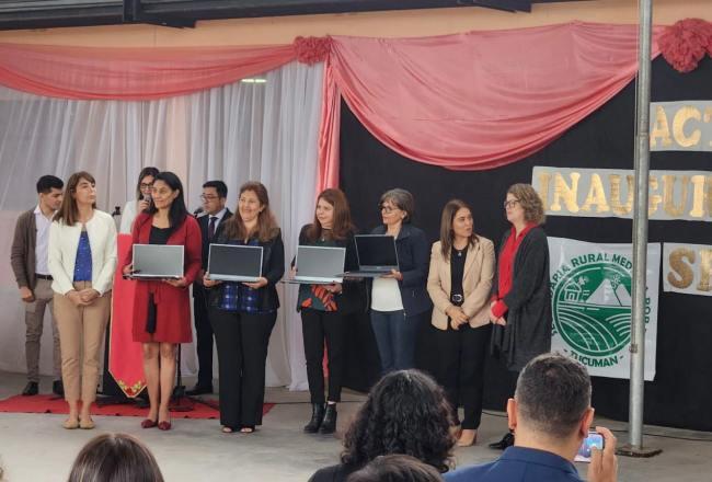 Por este motivo, la secretaria de Educación, Isabel Amate Pérez; junto a la directora de Educación Secundaria, Eugenia Dip Torres; la especialista en Educación de Unicef Argentina, Cora Steimberg; la oficial de Educación de Unicef Argentina, Yanina Paparella; y el Comisionado Comunal de San Felipe y Santa Bárbara, Francisco Villa; encabezó el acto en donde se entregaron certificados a las nuevas Escuelas Rurales mediadas por TIC: Escuela Secundaria El Chañar, Escuela Secundaria Media Ingenio Leales, Escuela Secundaria Rural mediada por TIC N° 5 Villa Belgrano y Escuela Secundaria Los Aguirre.