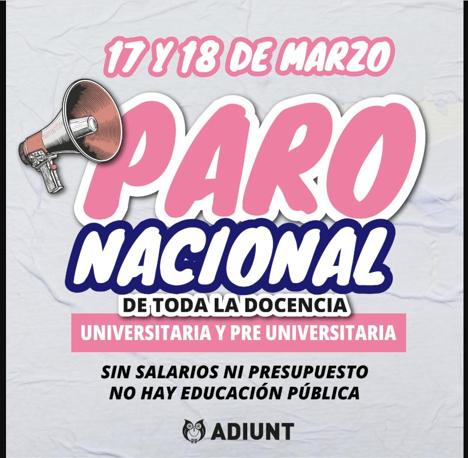 La docencia universitaria y preuniversitaria realizará un paro nacional de 48 horas los días 17 y 18 de marzo en reclamo de una urgente recomposición salarial y presupuesto para la educación pública
