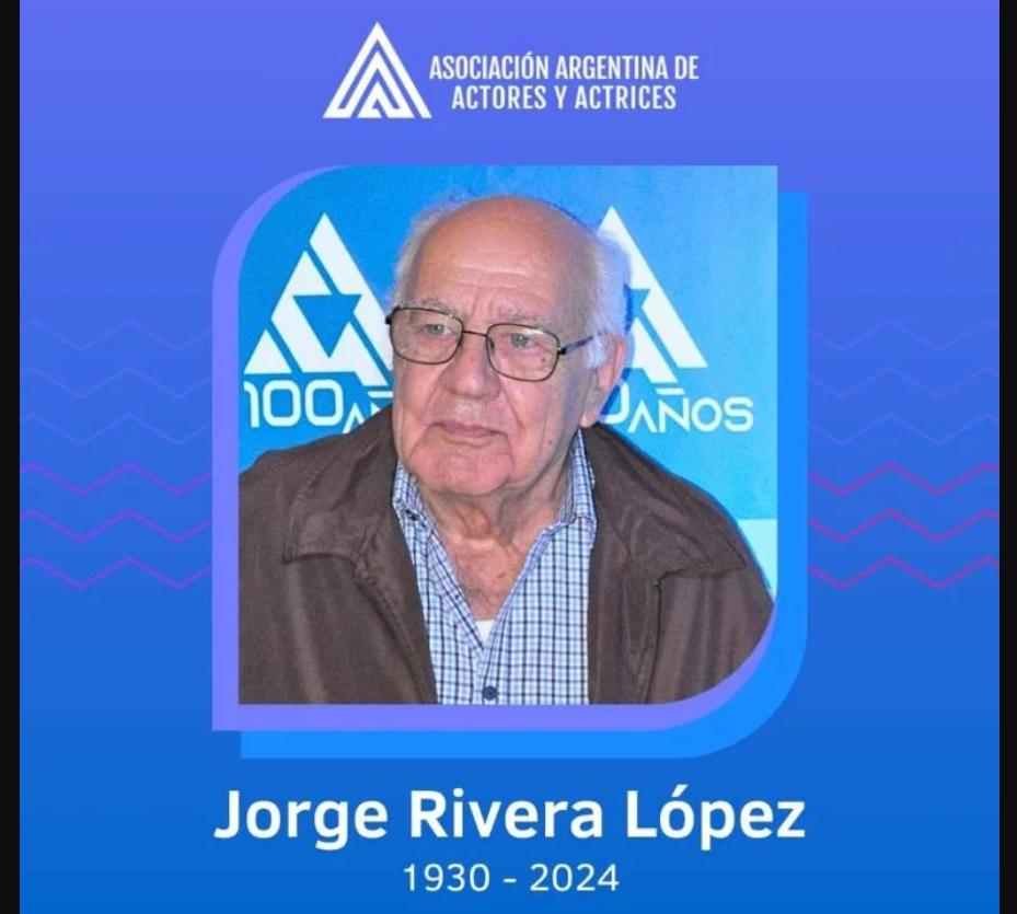 La Asociación Argentina de Actores y Actrices emitió un emotivo mensaje en sus redes sociales: “Con profundo dolor despedimos al querido compañero, el actor Jorge Rivera López, histórico Presidente y Secretario General de nuestro sindicato. Su partida deja un vacío inmenso en nuestra comunidad”.