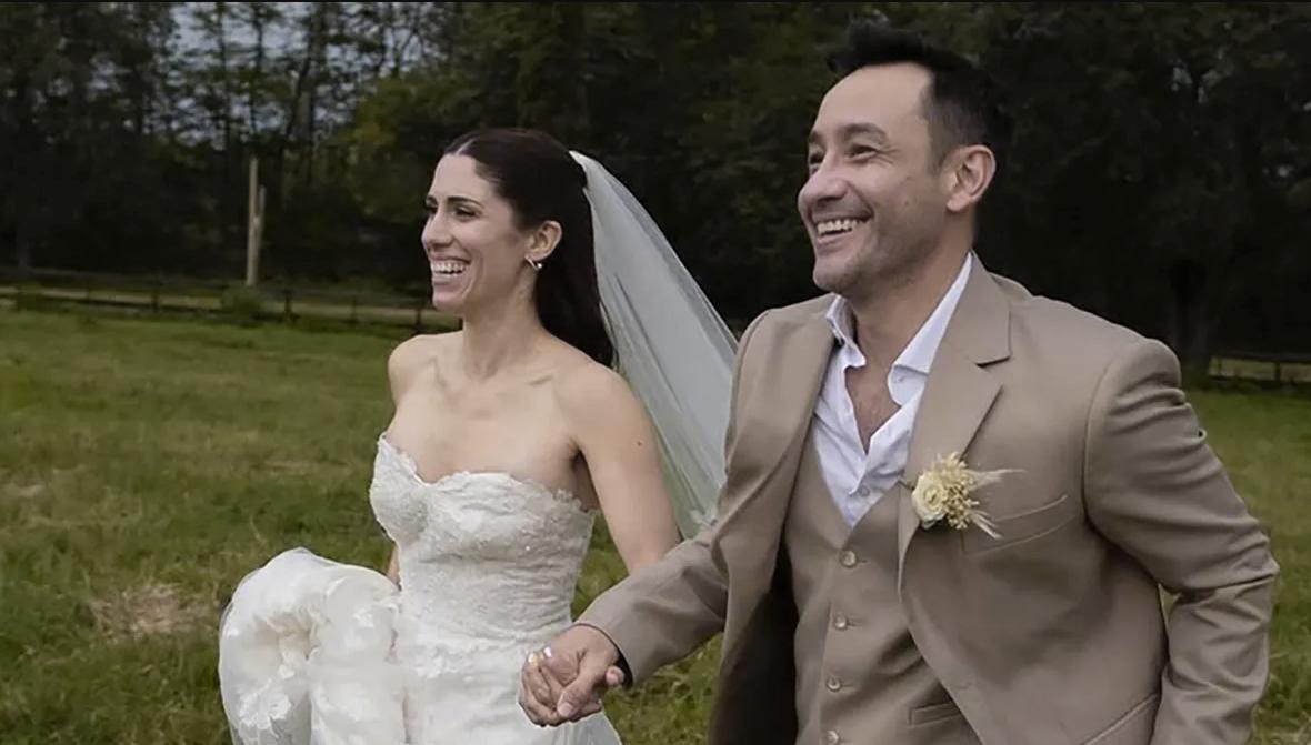 La boda se habría celebrado el sábado 22 de marzo y recién el domingo el cantante realizó el anuncio que vino acompañado por románticas fotografías de su gran día. En una de las postales, aparecen corriendo al aire libre, ella con un vestido de novia muy clásico, con velo y corte corazón. Mientras que el cantautor optó por un traje en tono ocre.