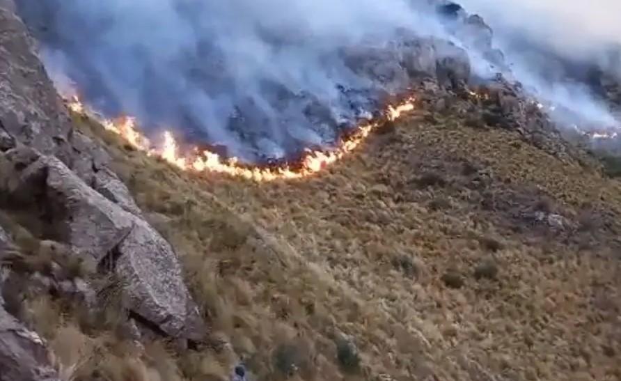 El fuego avanza entre los puestos 4, 5 y 6 del cerro, desde “la media ladera hacia arriba”, dijo Taboada. “Es de muy difícil acceso y hay viento sur entonces trepa el cerro”, agregó.
