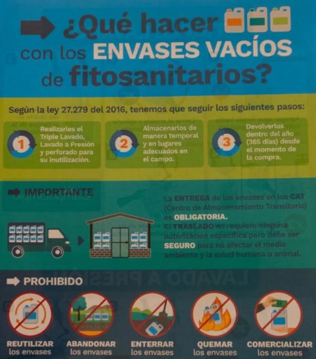 Precisamente, uno de los obstáculos previos a la implementación de este sistema fue la necesidad de adecuar la legislación provincial. Esto incluyó la modificación de la consideración de los bidones vacíos como “residuos peligrosos”, permitiendo que los productores los trasladen a los Centros de Almacenamiento Transitorio (CAT).