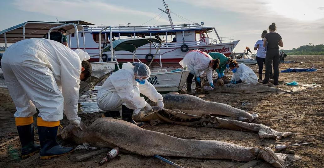 El intenso calor y la sequía que asolan el norte de Brasil provocó una tragedia ambiental. Un inusual aumento en la temperatura del agua, que tuvo su pico el 28 de septiembre a las 16:00 horas, cuando trepó hasta los 39.1 grados centígrados, es hasta ahora la causa más probable de la muerte de gran cantidad de delfines y tucuxis del lago Tefé, ubicado en el estado de Amazonas, que se alimenta con agua del río homónimo y al que sólo se puede acceder en avión (a 1.20 hs. de vuelo desde Manaos) o en barco. Sólo ese día aparecieron muertos 70 individuos, pero desde mediados de ese mes hasta la fecha, se reportaron un total de 154 decesos, los de 131 delfines rosados (incluido en la lista de especies amenazadas en 2018 por la UICN -Unión Internacional para la Conservación de la Naturaleza-) y 23 tucuxis (en la misma situación desde 2020). Esto significa la muerte del 10% de la población de cetáceos del lago Tefé, considerado un santuario de esas especies.
