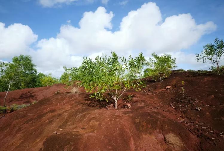 Investigadores y ejércitos de voluntarios han intentado restaurar los exuberantes paisajes históricos de la isla del Pacífico. Sin la vegetación original, el suelo expuesto se erosiona con las fuertes lluvias, enrojeciendo los ríos y arroyos con sedimentos que pueden contaminar las fuentes de agua potable y asfixiar los arrecifes de coral río abajo.