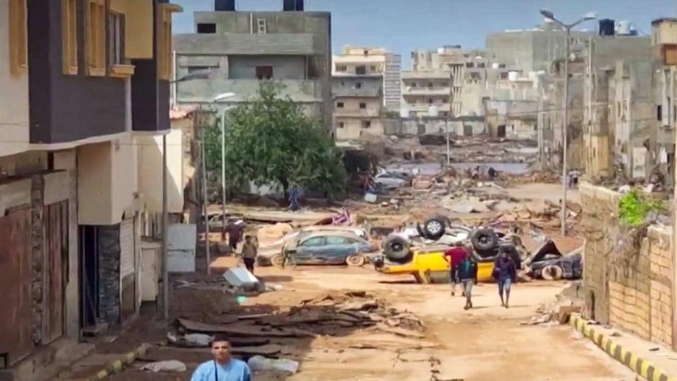 Edificios enteros fueron barridos por el agua y otros están medio destruidos, con vehículos encastrados en sus paredes. Esta catástrofe golpea a un país asolado por años de conflicto, donde hay dos gobiernos enfrentados.