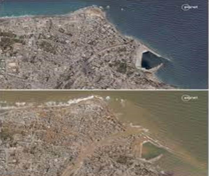 La tromba de agua por la tormenta Daniel que golpeó el fin de semana pasado la ciudad de Derna, a orillas del Mediterráneo, reventó dos represas y provocó una riada fulgurante que arrasó con todo a su paso.