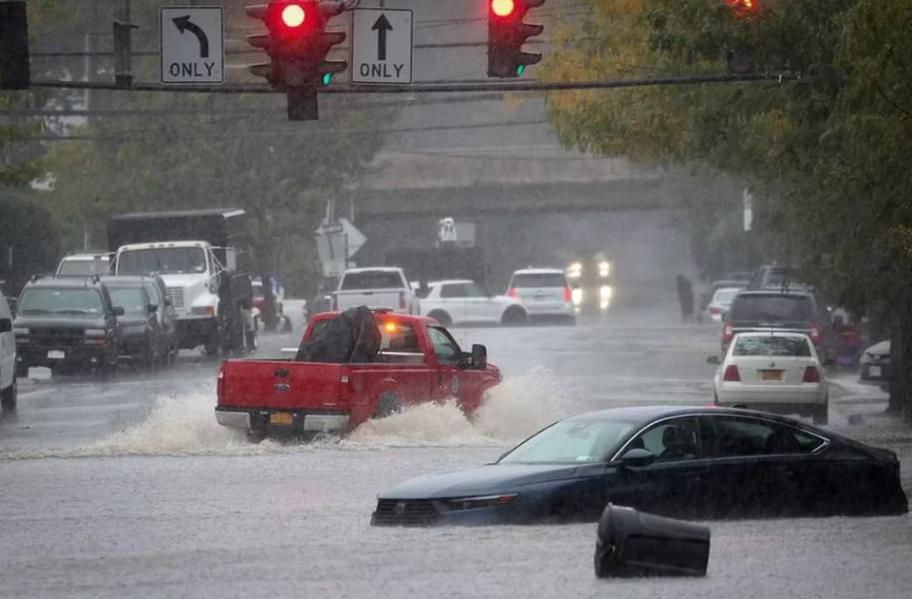 Hasta 13 centímetros (5 pulgadas) de lluvia cayeron en algunas áreas durante la noche, y se esperaban hasta 18 centímetros (7 pulgadas) más a lo largo del día, dijo la gobernadora de Nueva York, Kathy Hochul.