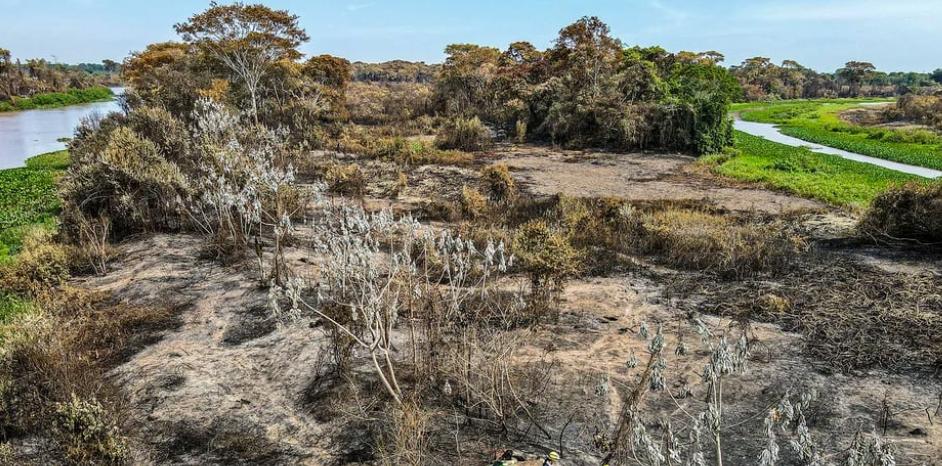 La multiplicación de los incendios en este vasto territorio de 210.000 kilómetros cuadrados amenaza una biodiversidad que se calcula en 3.500 especies de plantas, 463 de aves y 124 de mamíferos, entre ellos el jaguar.