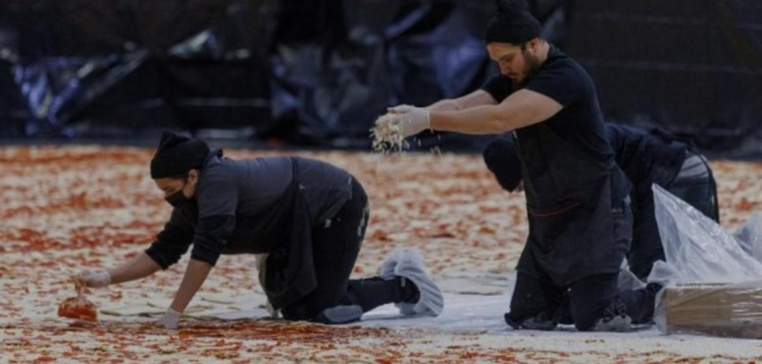 El gigantesco platillo surgido siglos atrás en Italia fue realizado en el Centro de Convenciones de Los Ángeles, cuyo espacio sería lo suficientemente grande como para contener una pizza de 1.300 metros cuadrados, con el objetivo de romper el récord mundial Guinness para la pizza más grande del mundo.