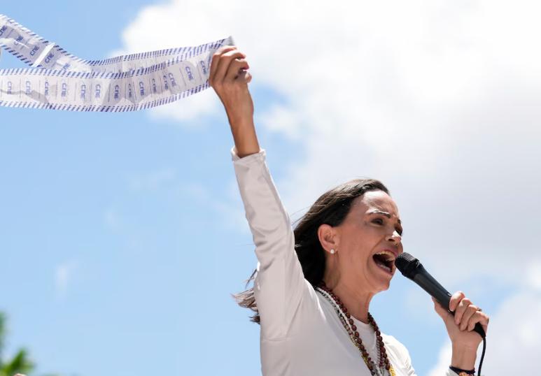 Machado aseguró que el chavismo “colapsó” en las elecciones presidenciales del 28 de julio, con la “victoria” -según reiteró- del candidato de la mayor alianza opositora, la Plataforma Unitaria Democrática (PUD), Edmundo González Urrutia, tras lo que el régimen de Maduro reaccionó con “violencia”.