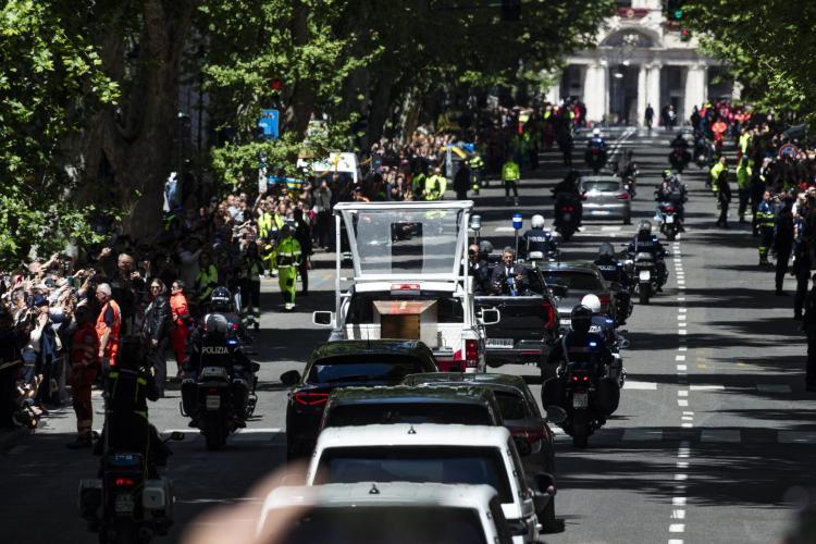 Las medidas de seguridad fueron numerosas y amplias, facilitadas también por la falta de circulación de los medios de transporte hacia el centro. Detrás del papamóvil, lo acompañaban algunos coches en cortejo.