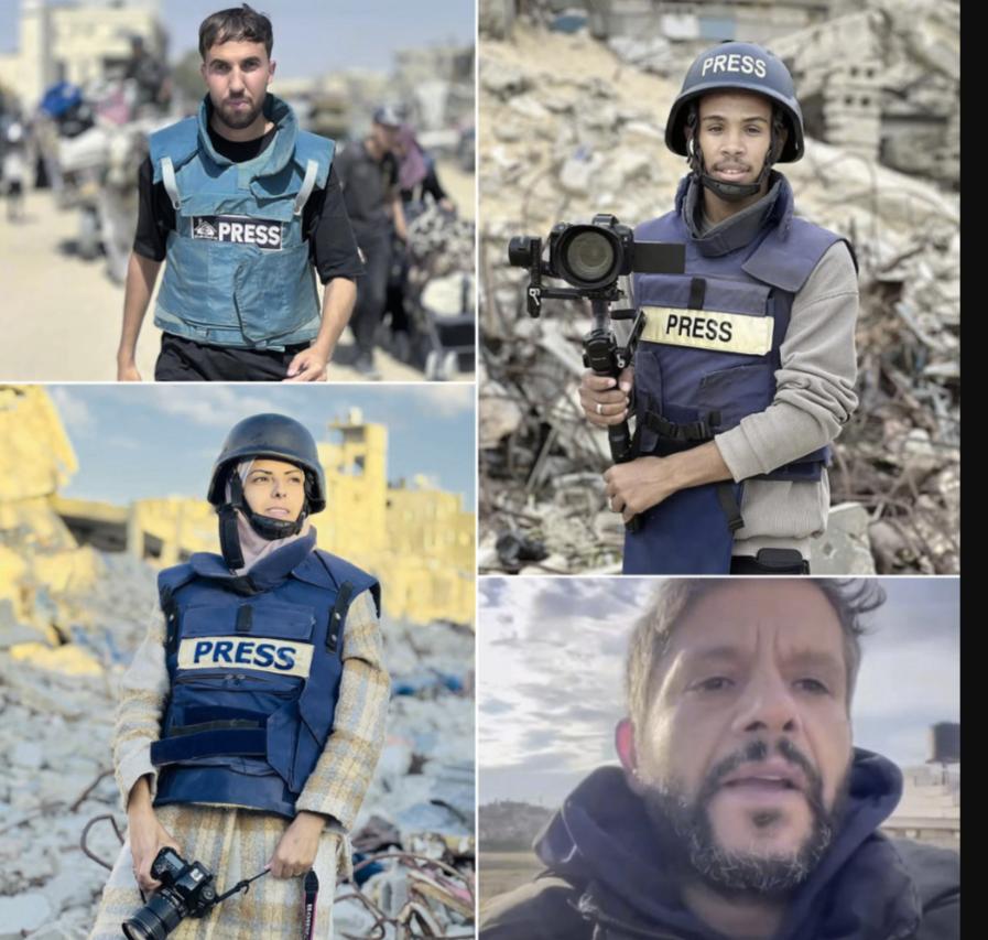 Los reporteros fallecidos son Hossam Al Masri (camarógrafo de la agencia de noticias Reuters), Mohamed Salama (camarógrafo de la cadena catarí Al Jazeera), Mariam Abu Daqqa (informadora de la agencia estadounidense AP) y Moaz Abu Taha (reportero de la cadena estadounidense NBC).