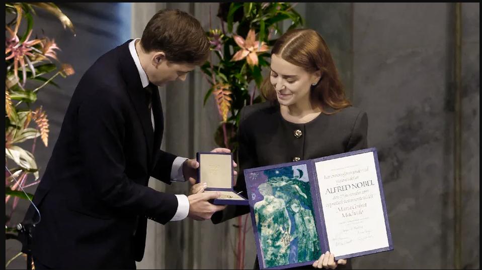 Tras recibir la medalla y el diploma del Nobel, Ana Corina Sosa Machado pronunció un sentido discurso escrito por su madre para la ceremonia, en el que denunció "el terrorismo de Estado" del gobierno de Nicolás Maduro y afirmó que hay que "estar dispuestos a luchar por la libertad".