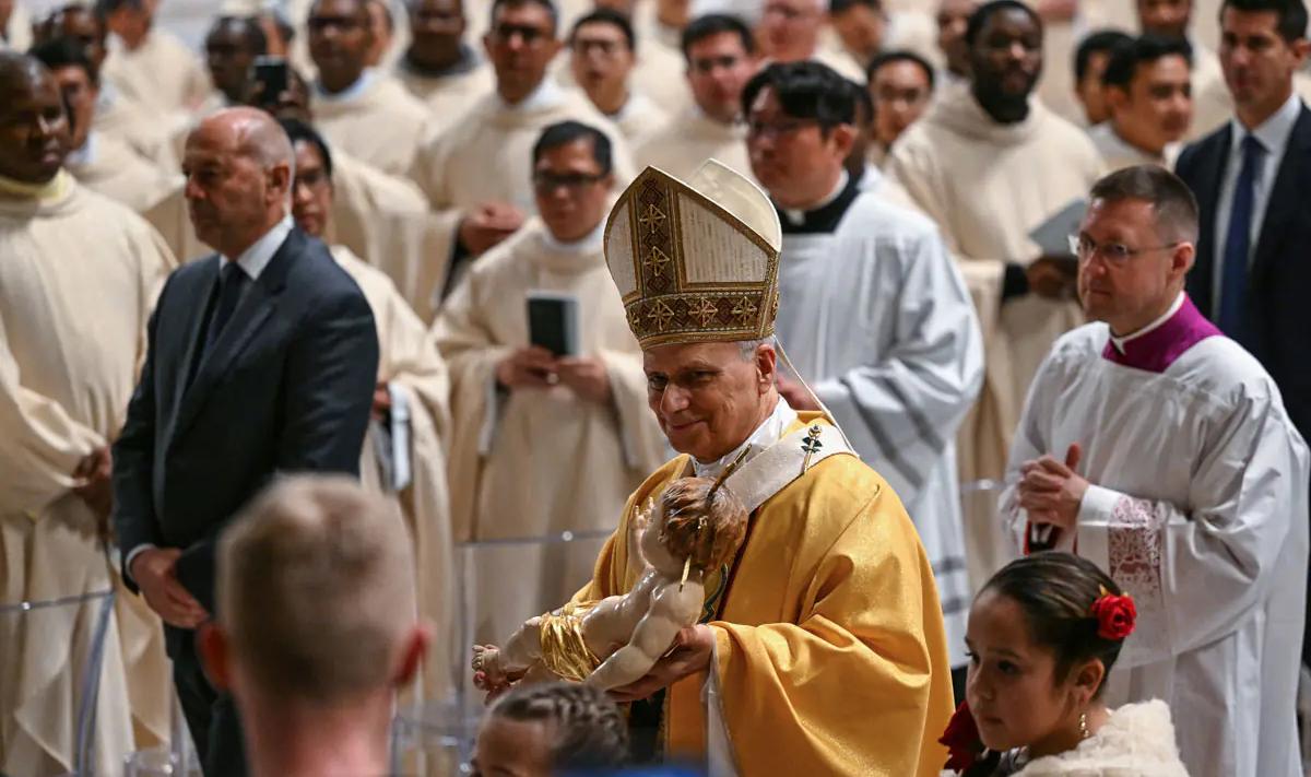 El papa León XIV celebró la noche del miércoles la primera misa de Navidad de su pontificado en la basílica de San Pedro en el Vaticano, donde envió un mensaje de "caridad y esperanza".