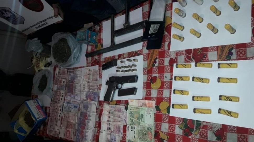 El personal de División Drogas Peligrosas Norte (DIGEDROP), quienes tomaron intervención precisaron se trataba de 262 gramos de marihuana picada. También participaron de las medidas efectivos de Infanteria Norte. La Fiscalía Especializada en Robos y Hurtos de la II Nominación a cargo de la causa ordenó el secuestro de las armas y artefactos electrónicos.