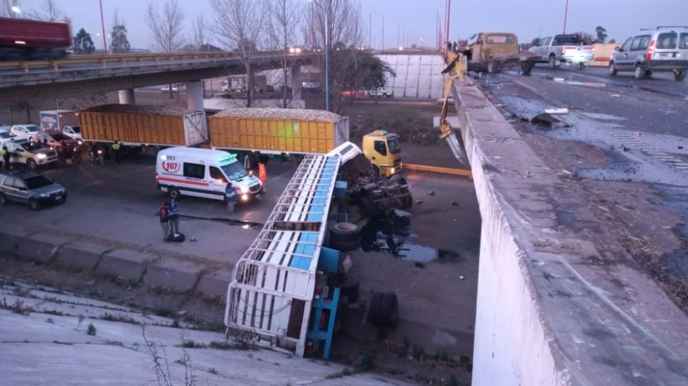 El accidente se registró esta madrugada cuando un camión de gran porte circulaba por el cruce elevado que da acceso a la autopista de Circunvalación, en San Cayetano,en la zona sur-este de la provincia.