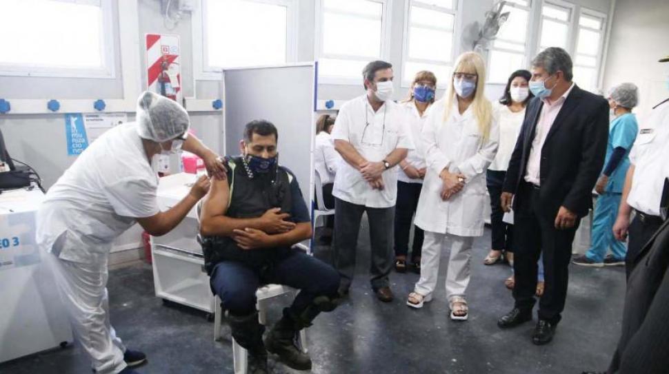 Siguiendo el plan de inmunización trazado por el Sistema Provincial de Salud, los trabajadores de la fuerza que están más expuestos, recibieron esta semana la inoculación en la escuela Enet N°5.