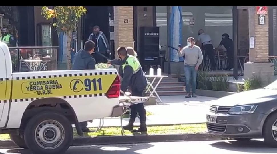 Momentos después, la Justicia ordenó que se secuestren las mesas y sillas del local gastronómico. Pero -según las fuentes- no pudieron llevar adelante esa medida porque los mozos se resistieron.Fuente:(Agencias)